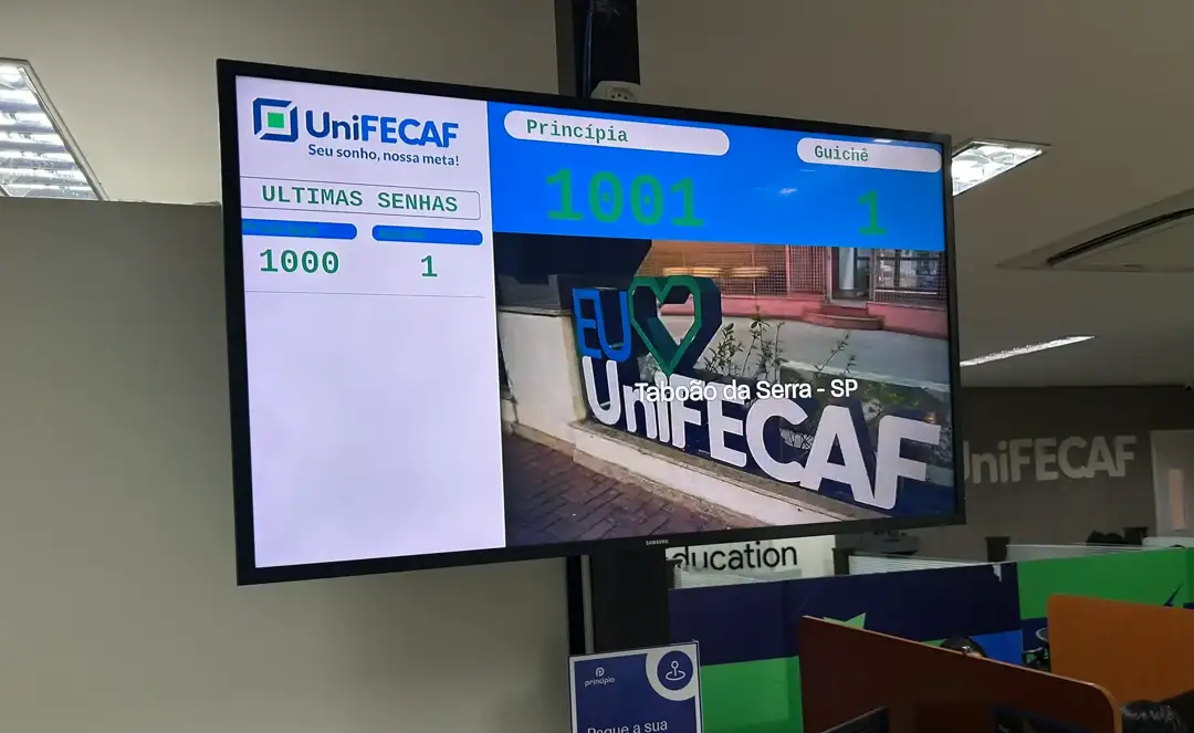 UniFECAF moderniza atendimento com NextQS, totem personalizado e comunicação digital, tornando o atendimento aos estudantes mais rápido e organizado.