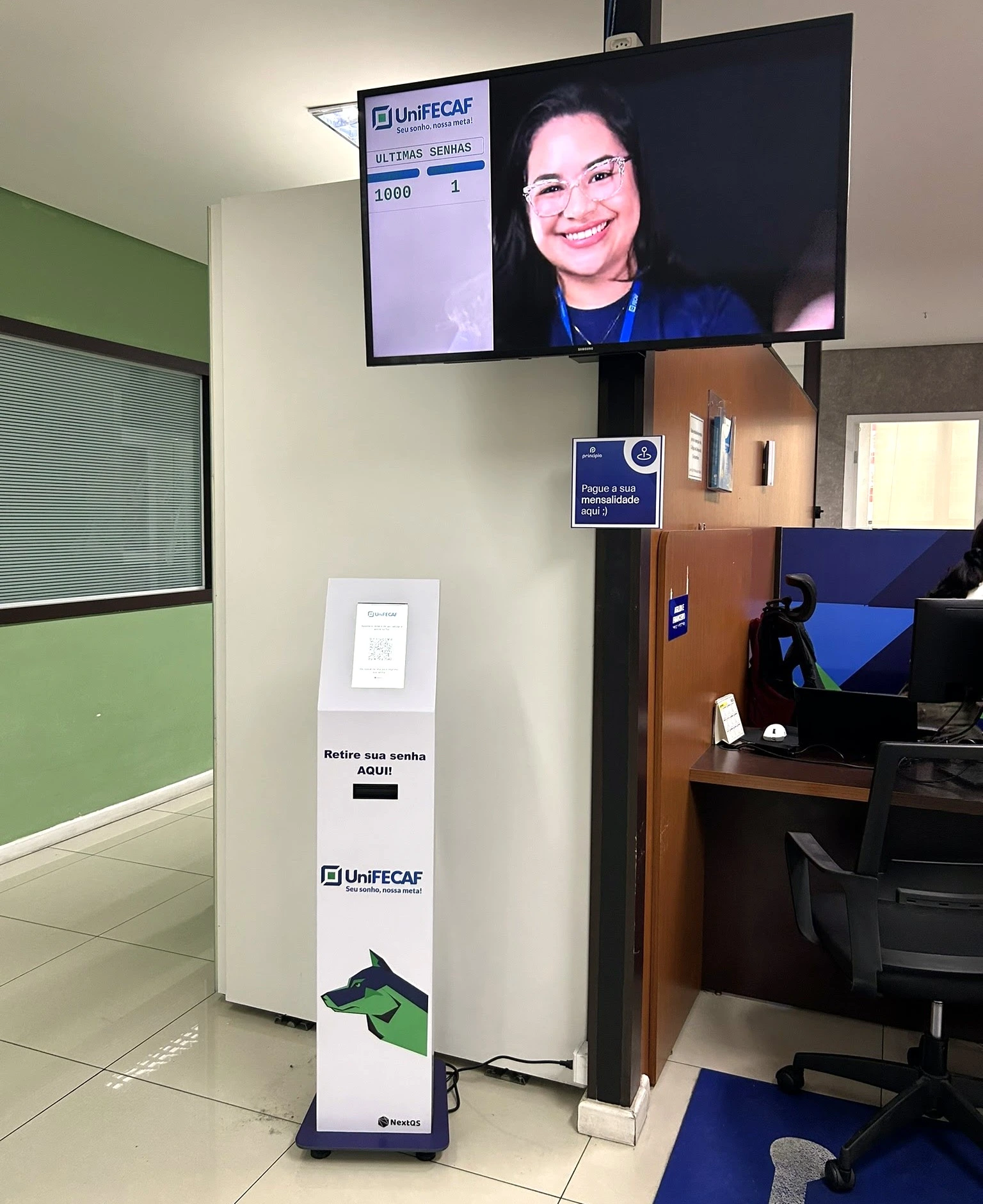 Com o NextQS, a universidade passou a contar com um sistema mais moderno e adaptado à sua realidade, incluindo um totem personalizado de 9” para impressão de senhas ou entrada na fila virtual por QR Code, com acompanhamento em tempo real pelo celular. Além de uma TV de chamadas com mídia digital que melhora a comunicação durante a espera. A solução também contribuiu para organizar melhor o fluxo de atendimento e aumentar a eficiência da equipe.
