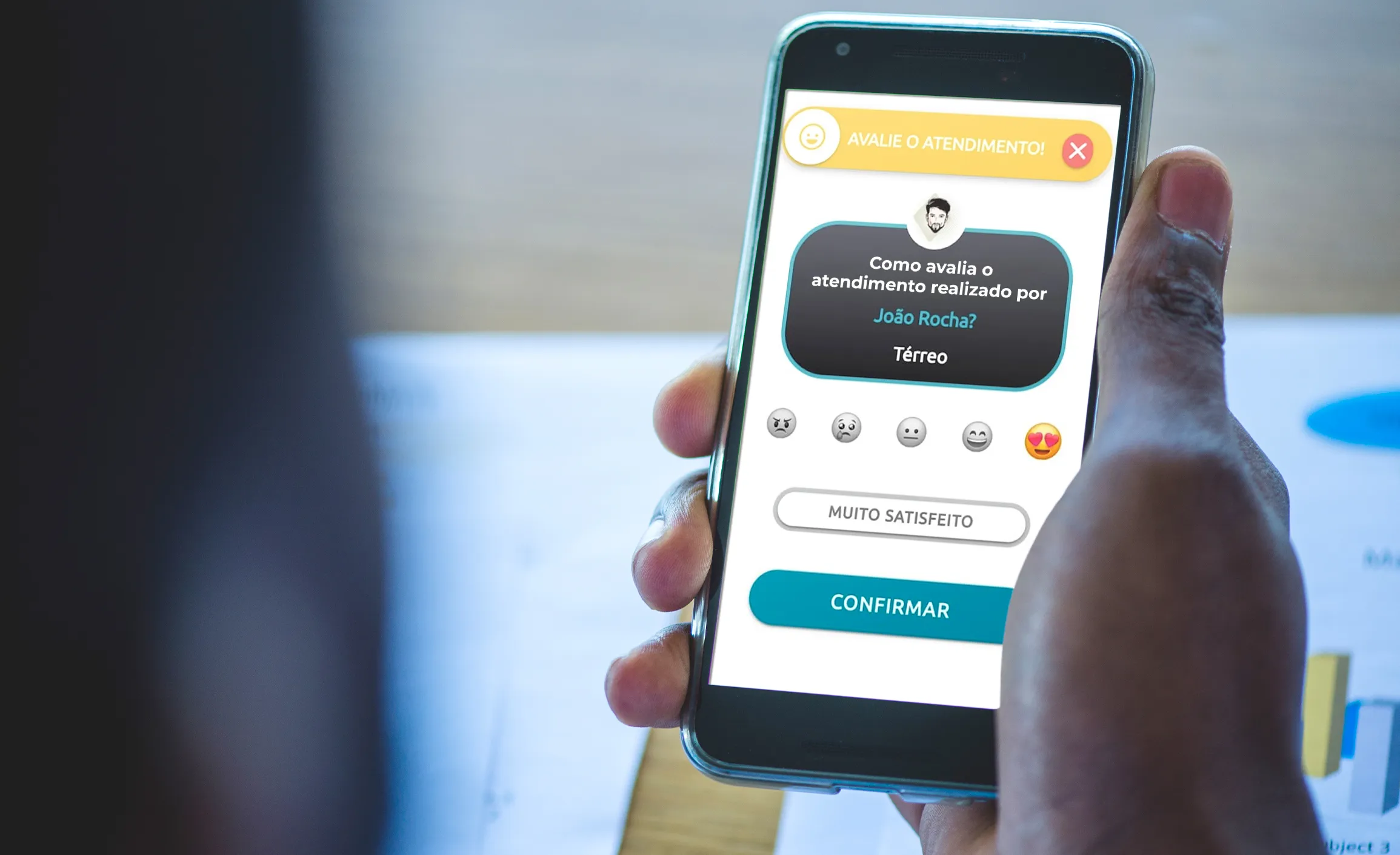 Check-in rápido com previsão de espera e posição na fila em tempo real. |